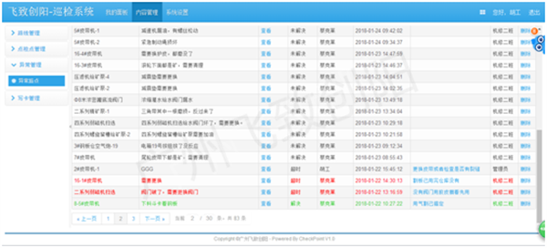 为了更好地管理厂区所有设备的运行情况,飞阳科技专门开发一套智能巡检系统助力厂区智能化建设,有效地管理设备,实时监控设备的运行情况,智能巡检系统不仅提高了厂区设备管理的智能化,信息化,而且加快了设备异常及时上报,修复的效率。