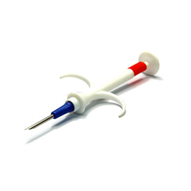 FY-RHTAGS-011 RFID动物标签芯片玻璃管注射器,采用生物玻璃封装,表面带有防滑动材料,产品体积小、重量轻,产品使用一次性注射器安全卫生,可有效避免动物交叉感染;适用于各类动物身份识别如:狗狗、猫咪、狐狸、龙鱼、小白鼠等,对动物生长的全过程进行的管理,只要读卡器天线靠近动物植入点,就可以采集到电子标签的数据